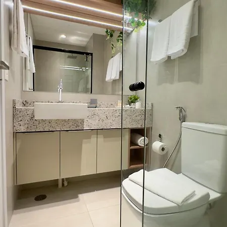 A Beach Class Meireles 500 M Da Beira Mar 2304 apartman a tengerre néz. Az apartman fürdőszobája törölközőkkel felszerelt.